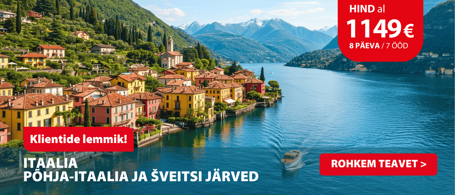 "Põhja-Itaalia järved ja Milano, 11.09–18.09.2024. Reis oli tõeliselt huvitav ja mitmekesine! Iga päev tõi kaasa uue avastuse – maalilised järved, armsad vanad väikelinnad ja uhked kirikud. Funikulööriga mäkke sõit ja laevasõidud järvedel olid kindlasti reisi tipphetked. Suurepärane reisigrupp ja fantastiline giid tegid kogu kogemuse veelgi nauditavamaks." – Peep N.